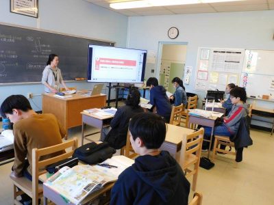 9年生1時間目は、社会科です。今日のテーマは、「冷戦の開始と植民地の解放」です。私が教室に入った時は、第2次世界大戦後の各国の様子についてその背景を探りながら、理解を深めていました。