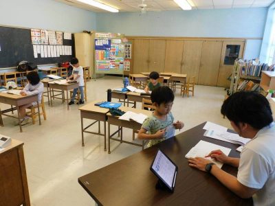 3時間目2年生は、算数です。私が教室に入った時はたし算のひっ算をしており、問題を解き終わった児童から採点をしてもらっていました。