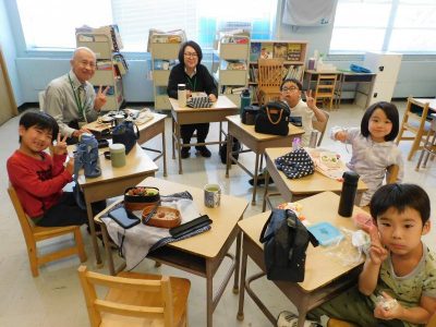 今日の“なかよしランチタイム”は、2年生教室にお邪魔しました。土日をどのように過ごしたか、家族の誕生日はいつか等次から次へと話題がつながりお弁当を食べる時間がなくなるほどでした。