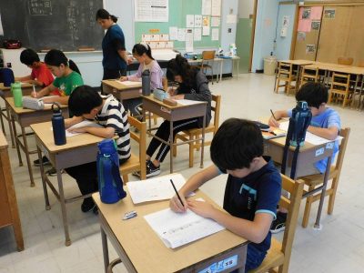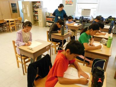 同じ時間6年生は、国語です。今日は、硬筆の練習です。皆、見本をじっくり見ながら集中して文字を書いていました。見本と見間違えるほど立派な出来栄えばかりでした。