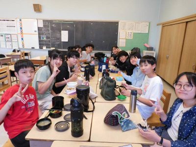 今日の“なかよしランチタイム”は、8年生教室にお邪魔しました。宿泊学習でのお土産や昼食、個人発表の内容等が話題となりました。