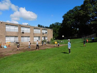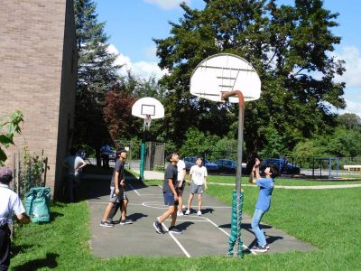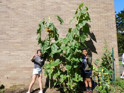メイプルタイムにはいつも通り、子供たちは鬼ごっこやバスケットボールで元気よく外で遊びました。9月から別棟に小さい子供たちの団体が引っ越してくるため、中庭に小さな遊具も設置されました。学校農園にあるヒマワリは、約3メートルの高さまで成長しました。