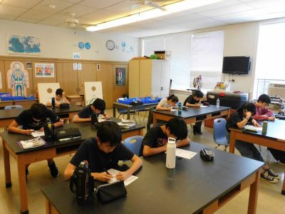 同じ時間9年生は理科で、今日は「太陽と恒星の動き」の単元テストに取り組んでいました。