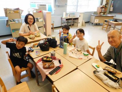 今日の“なかよしランチタイム”は、2年生教室にお邪魔しました。どれも美味しそうなお弁当ばかりで、おうちの方への感謝の気持ちもあらわれていました。夏休みの様子を聞くと、話したいことがたくさんあり、時間が全然足らなそうでした。