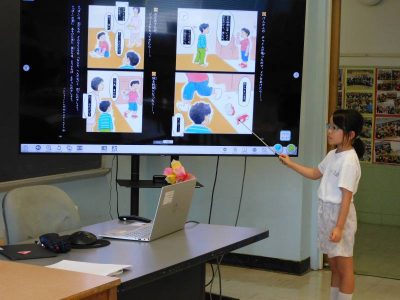 5時間目同じ2年生は、道徳です。単元「なかよしだけど」で、友達の家に遊びに行った際の出来事にてついて考えました。登場人物のとった行動について、なぜよくないのか、どうすべきだったのか等活発な意見が出されていました。また、話の内容を実際に演じてみることで考えを整理していました。