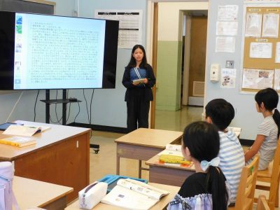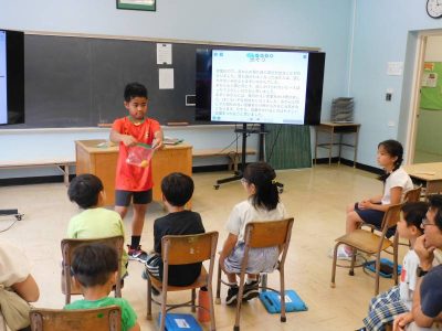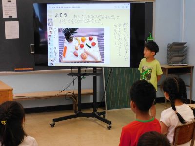 同じ時間5年生は、国語です。今日は、昨日から準備を進めていた自分で選んだ本の魅力を伝え、紹介する(その人が読みたくなる)ためのプレゼンです。発表後に子供たち、そして保護者の方々からも感想をお聞かせいただきました。その際、子供たちの発表からその本をさらに読みたくなったとのお声もいただきました。