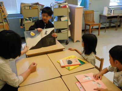 2年生2時間目は、国語です。今日は、お気に入りの本を友達に紹介しました。なぜその本を選んだのか、お気に入りの場面はどこなのか等上手に説明していました。発表し合った後は、本を交換し合って読んでいました。