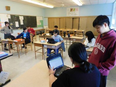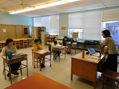 今朝のオークランドはかなり涼しく、手元の温度計では12℃でした。9月下旬頃の気温です。また風も強かったので、体感温度としては、10℃を下回るような寒ささえ感じました。(画面からは寒さが伝わらないため、朝のバス・ピック&ドロップ待ちの様子を載せました。)日本国内の学校はまだ夏休みで猛暑だと思いますが、NJ校は秋本番を通り越して、初冬の雰囲気です。周囲の木々の葉の色も変わりつつあり、確実に季節も進んでいるようです。
