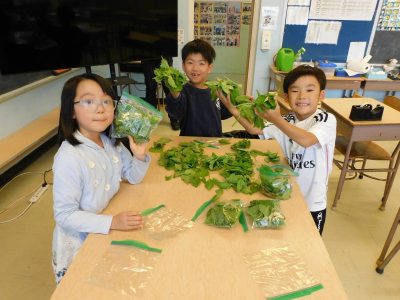 2年生6時間目は、生活科です。2年生は、自分たちで育てたバジルや大葉をNJ校の児童生徒に配ってくれています。あと中等部2学年で全学年配布になるそうです。