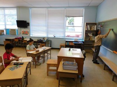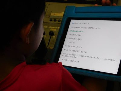 米国ではBack to Schoolのフレーズがよく聞かれ、現地校では来週Labor Day明けから新年度が始まるところが多いようです。そんな中、NJ校では今日から2学期も3週目となります。今日のお昼の放送は、初等部の担当です。iPadで準備した原稿をもとに、元気よくクイズなどを披露していました。