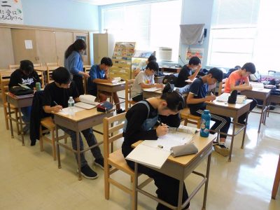 同じ時間7年生は国語で、一生懸命プリント学習に取り組んでいました。