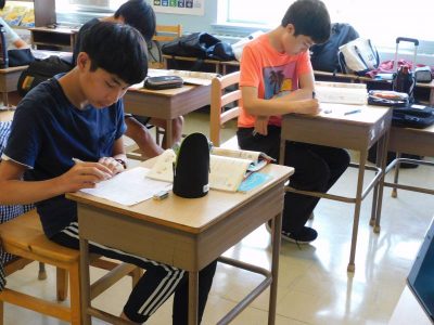 2年生6時間目は、音楽です。最初に日本語の歌を練習していました。歌う際どのくらい伸ばすのかなどメモを取りながら進めていました。英語の歌の際は、手足でリズムを取りながら練習していました。