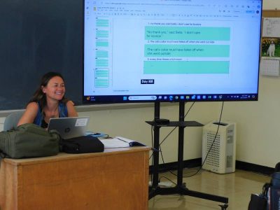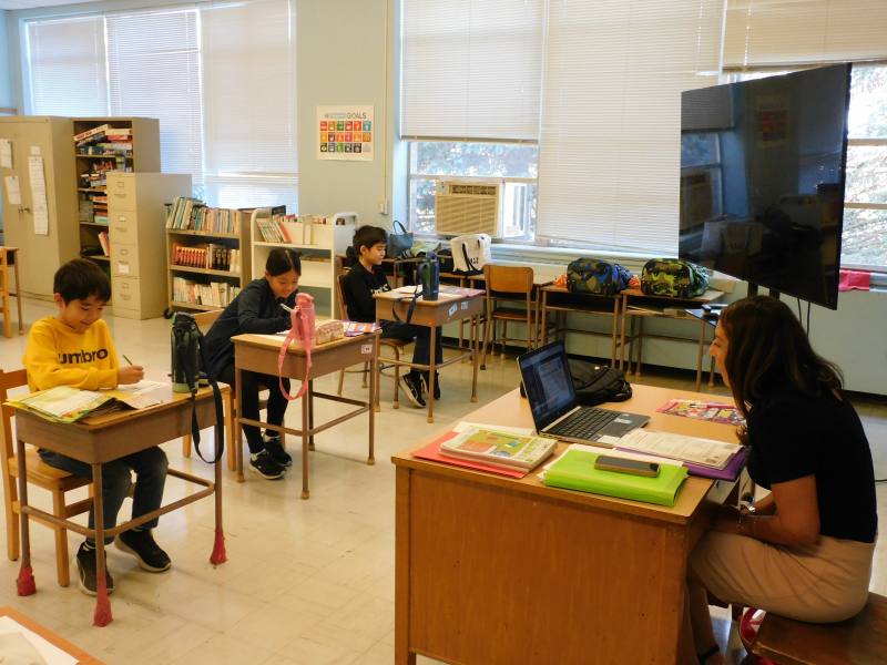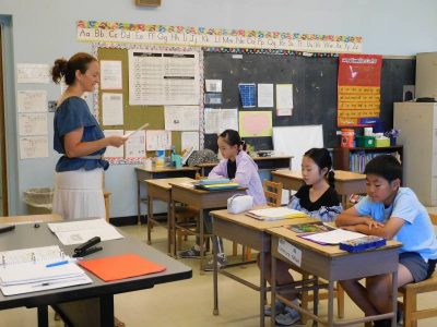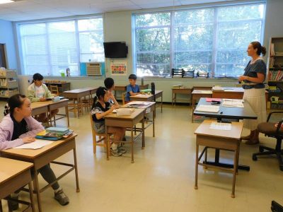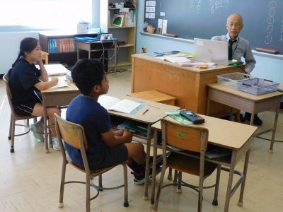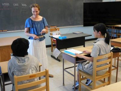 同じ時間、中等部はESLです。K先生の授業では、テキストの内容に関わる答えを表現の仕方にも注意しながら確認していました。