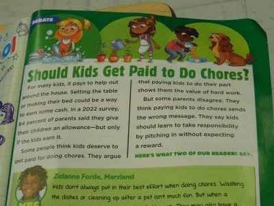 R先生の授業では、ちょっとしたお手伝い(雑用)をした時、報酬を払うべきかどうかについて考えました。この問題について賛成・反対どちらかの立場に立ち、その理由を一生懸命考えていました。