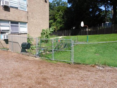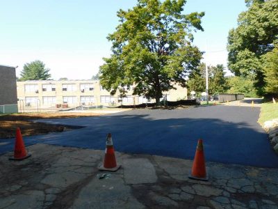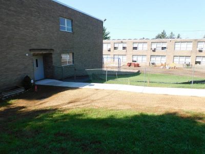 昨日夕方、中庭に通ずる場所に扉がつきました。また、別校舎への通路やバス発着場もほぼ完成していました。