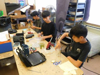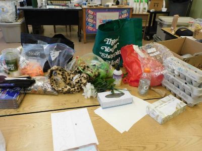 8年生4時間目は、2学期最初のARTの授業でした。リサイクル品を利用し、自らの豊かな創造力を働かせながら作品作りが始まりました。机上にはたくさんのリサイクル材料が並んでいます。また、作品によって生徒たちが色々異なる材料や道具を使うため、K先生も忙しそうでした。