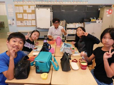 今日の“なかよしランチタイム”は5年生教室にお邪魔しました。夏休みの話題から発展して、話の中心は、アメリカやカナダに住む野生動物でした。私がまだ動物園でも見たことのない動物たちを、野生の状態を間近で見た経験を熱く?語ってくれました。