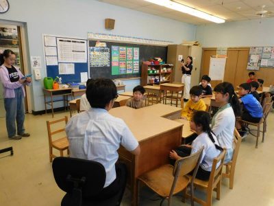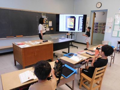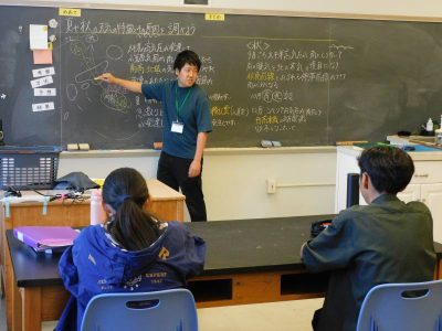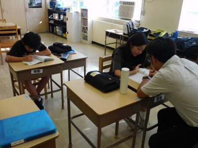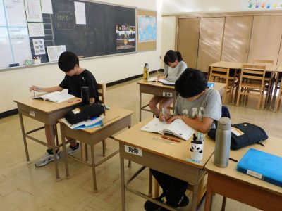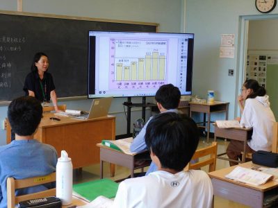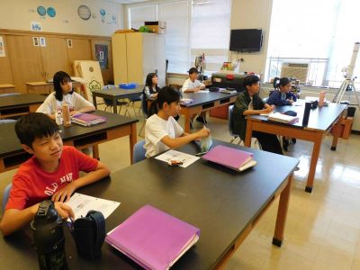 同じ時間8年生は、理科です。今日は、夏や秋の気圧配置や天気の特徴についてその原因を確かめていました。質問に対する答えも既習内容の語句を正しく使うことができる姿に、学習内容がしっかり定着していることがわかりました。