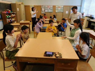 初等部はメイプルタイムに、集会委員の発案でカードゲームを楽しみました。カードの数字がグループ内の他の人より小さいと思う順番に出していきます。ただし、一切しゃべることはできません。表情やジェスチャーから相手の心理を読んでいきます。上手くいった際は、どのグループも大歓声に包まれていました。