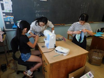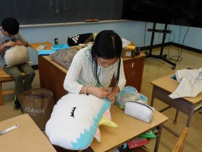 5年生2時間目は、家庭科です。今日は、メイプル祭で展示する作品作りを行っていました。それぞれ完成に近づいていましたが、どれも初めて裁縫に挑戦したとは思えないほど立派な出来栄えです。