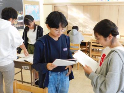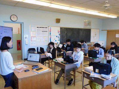 同じ時間9年生は、社会科です。今日は、「行政の仕組みと内閣」がテーマです。途中、現政権の顔ぶれを確認した際、その中のある大臣にお会いしたことがあるという生徒もいました。