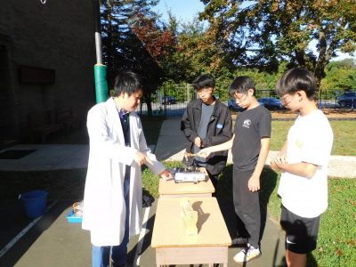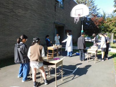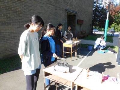 同じ時間8年生は、理科です。今日は、鉄と硫黄を使った実験を屋外(バスケットコート)で行いました。屋外であるため、火力が十分でないグループもありましたが、皆興味津々で実験に取り組んでいました。