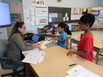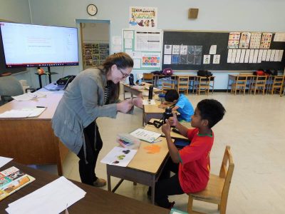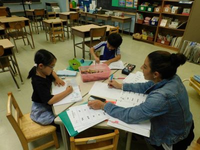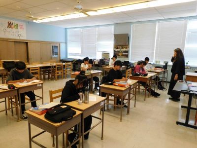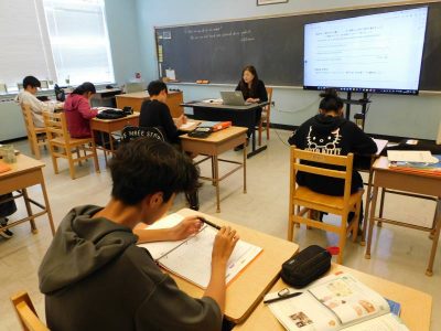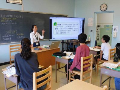 2,3年生4時間目は、ESLです。Re先生の授業では、自分の目標について英文で書き、添削してもらっていました。Ro先生の授業では、日記風の英文を書く際のポイント(複数形)等について説明を受けていました。