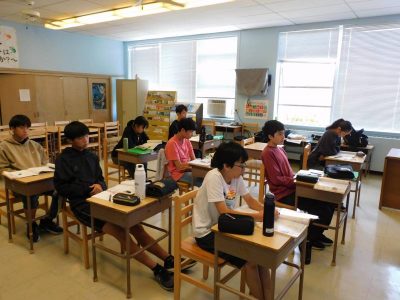 同じ時間8年生は、英語です。私が教室に入った時は、教科書の内容に関わるプリントに取り組んでいました。