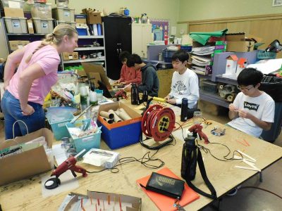 同じ時間9年生は、ARTです。今日はメイプル祭に展示する作品作りに取り組んでいました。テーマであるリサイクル品を使用した素敵な作品が完成しつつあります。