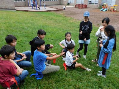 メイプルタイムには、みんなでしっぽとりゲームを楽しんでいました。途中、初等部・中等部に分かれ作戦を立てる光景も見受けられました。微笑ましい限りです。