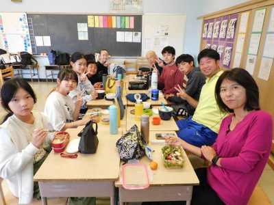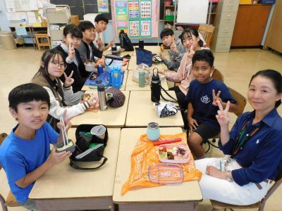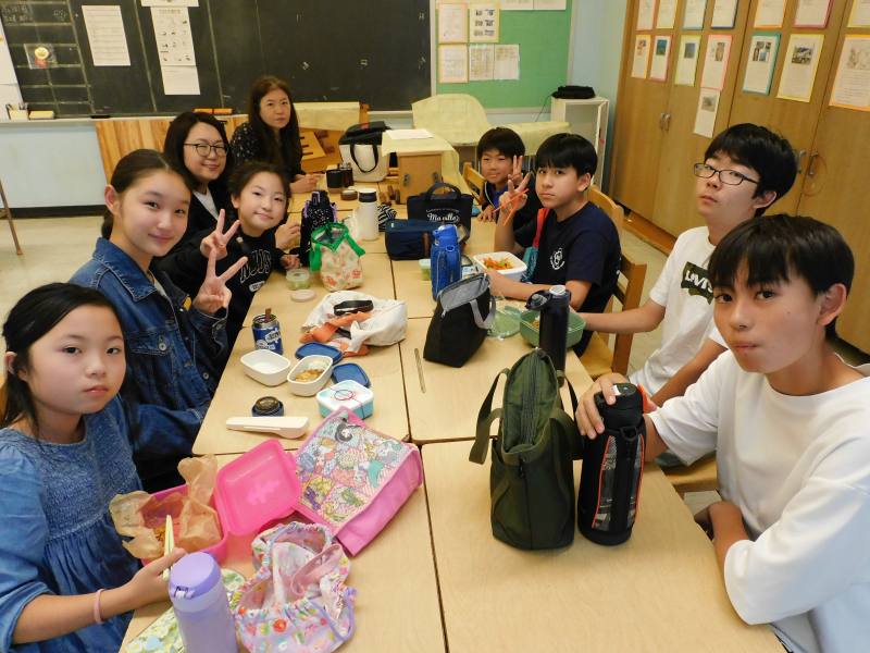 もはやNJ校伝統行事で、“NJ スペシャル”ともいえる全校ランチが本日開かれました。初等部・中等部縦割りグループで、みんな仲良くお弁当を食べます。休み時間も一緒に遊んでくれる大きなお兄さん、お姉さんたちとお弁当を一緒に食べられるのは、初等部にとっても嬉しいことです。今後もいろいろなNJスペシャルを設け、一人一人の喜び(Joy)につながる時間が増えるといいなと思います。