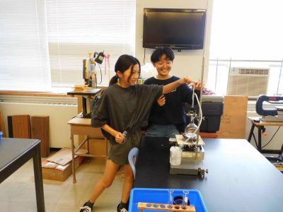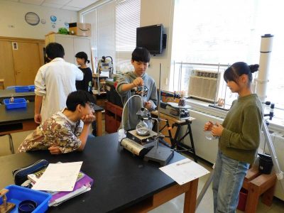 同じ時間7年生は、理科です。今日は、液体同士の混合物から物質を分けて取り出す実験に挑戦していました。沸騰するまで少し時間がかかりましたが、待っている間も楽しそうにしていました。