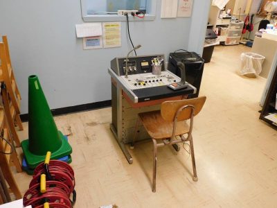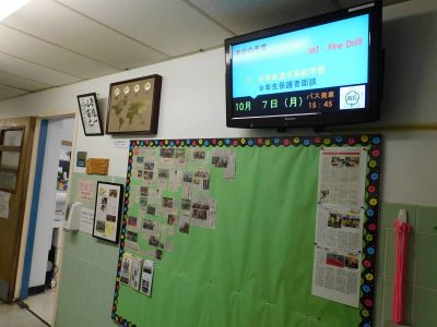 教頭先生のお仕事は、多岐にわたります。授業の合間を縫って、児童生徒の活動状況の把握、学校から配信される文書確認及び配信メール管理、日々のバス運行調整、文科省等からの調査対応、PTO関連等々挙げたらきりがありません。そのような中、校内の環境整備にも尽力していただいています。例えば、NJ校看板。老朽化が進んでいたため先日、全面を2度塗りしてくださいました。例えば、職員室内、校長室・職員室前の電光掲示。教室内でかつて使用していたディスプレイを再利用し、よみがえらせていただきました。例えば、職員室前の掲示板、岸田元総理夫人からいただいた世界時計や色紙の掲示。そして今度は、放送室の放送機器を分解し、ひとつにする作業。これらはほんの一例でまだまだ他にもたくさんありますが、そのひとつひとつが職人技です。教頭先生の活躍はまだまだ続きそうです。