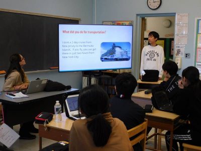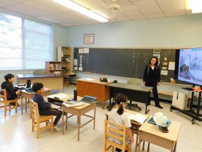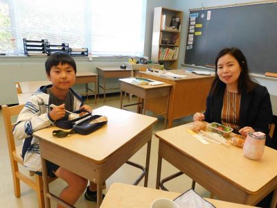 本日の“なかよしランチタイム”は、4年生教室にお邪魔しました。自分の習い事について様々な例を紹介しながら日米を比較し、大変わかりやすく説明してくれました。