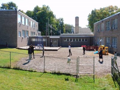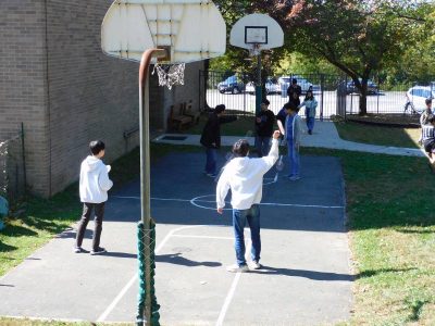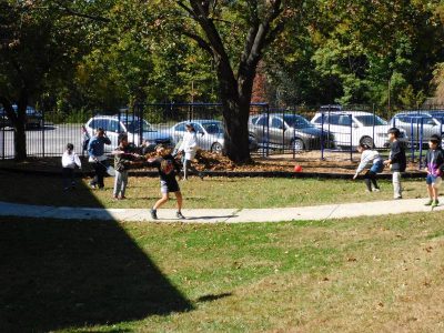 先日もお伝えした通り、最近の外遊びは、バドミントンが大人気です。メイプル広場が狭いので、中庭でも遊んでいます。メイプルの木の下には、大きな落ち葉の山もできています。