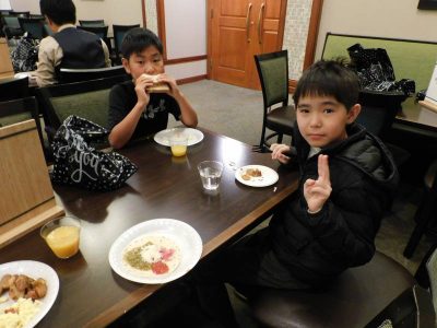 宿泊学習2日目になりました。今朝はほとんどの児童が目覚めもよく、昨日の疲れ見せず皆元気に朝食をとりました。