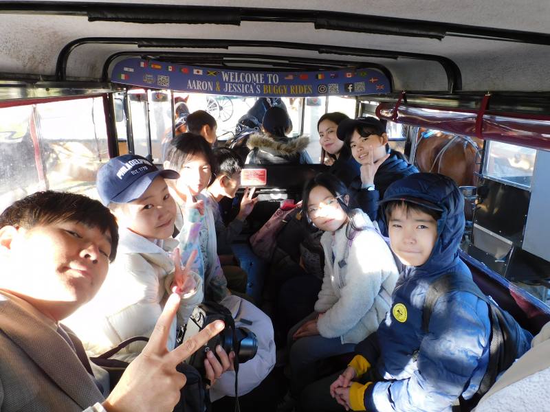 2日目最初はBuggyに乗り、Amish Villageを見学しました。事前学習のスライドで見た馬車とすれ違ったり、Amish Villageの風景を見たりしました。また、そのあと訪れたファームでは、アーミッシュの生活について係員にたくさん質問し、係の方からは”Good queston!”の言葉が続き、質問内容の質の高さを痛感しました。ギフトショップでお土産も買いました。