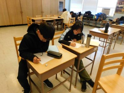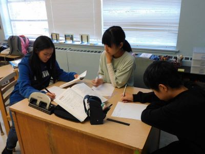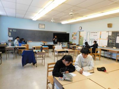 同じ時間8年生は、数学です。今日は、平行四辺形の性質について考えました。今後グループごとにその特徴を証明するプレゼンをするため、互いにその相談をしていました。尚、明日は全日出張となるため次回のWhat’s Newは明後日からとなります。あらかじめご了承ください。