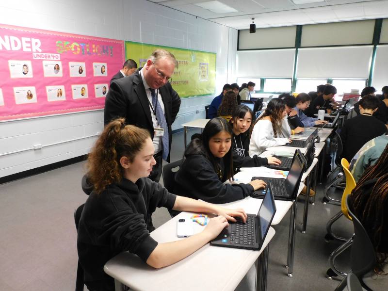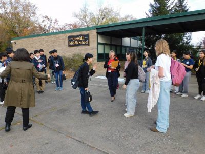 中等部は本日、Cresskill Middle/High Schoolにて学校間交流を行いました。NJ校はかなり以前にこの学校と交流をした経緯があるそうですが、それ以来の交流となります。