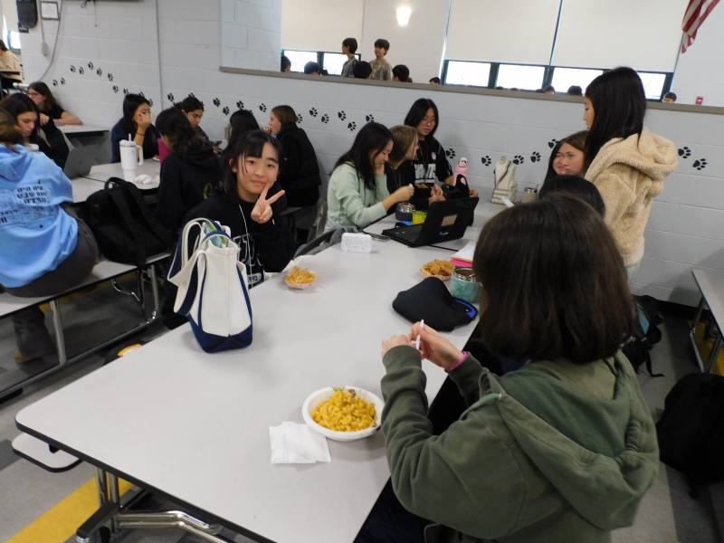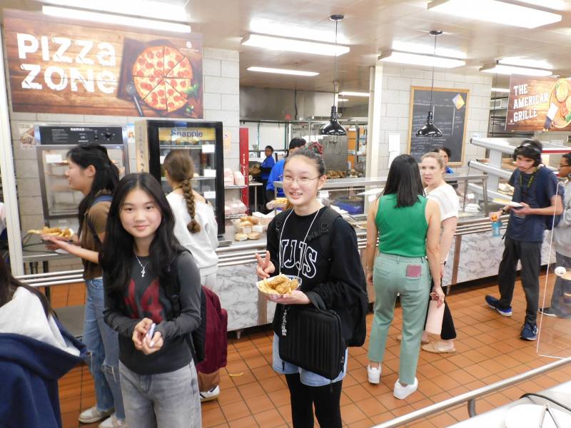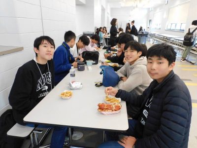 ランチもカフェテリアで一緒に食べました。High Schoolの生徒の中には、車や徒歩で校外に出て昼食を摂る生徒もいました。