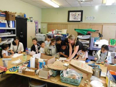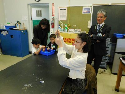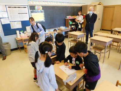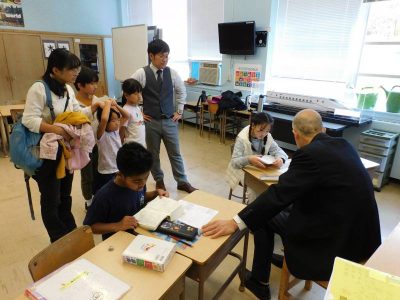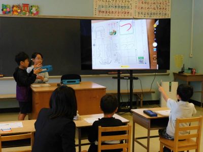 説明会後には教室にて、授業に参加された方もおり、実際の雰囲気を感じていただきました。特に2年生は、先生役として国語と算数の授業を披露してくれました。ARTの授業にも参加していただきました。