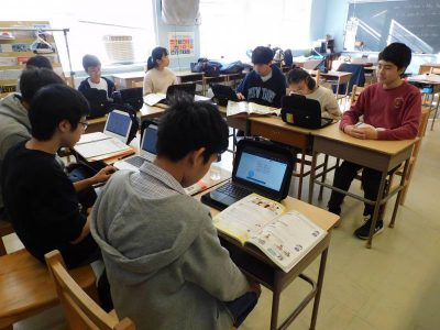 9年生6時間は、英語です。今日は、「暮らすなら都会より田舎」、「親は子供のインターネットアクセスを制限すべき」等3つのテーマでミニディベートを行いました。個性的なチーム名も興味をひきましたが、各チームの主張も独特でジャジとしてどちらに軍配を上げるかかなり苦労しました。