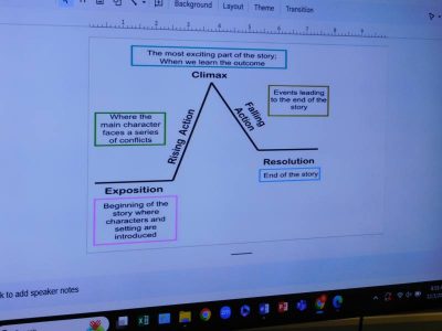 同じ時間8年生は、英語です。私が教室に入った時は、動詞の過去形に関わるゲームに取り組んでいました。その後、受身形について画面を見ながら例文を作成していました。