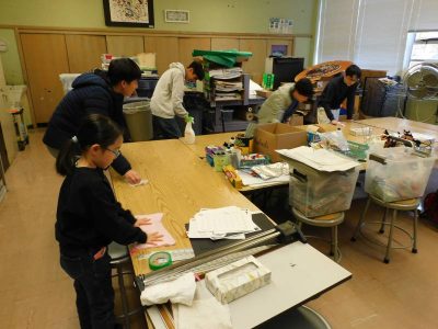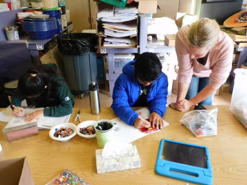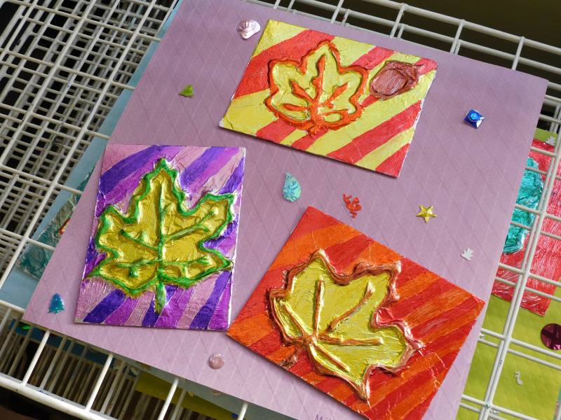 3年生は、ARTの時間です。台紙にのりで凹凸を作り、その上に銀紙を張って色付けする作業に取り組んでいました。素敵な作品が完成していました。