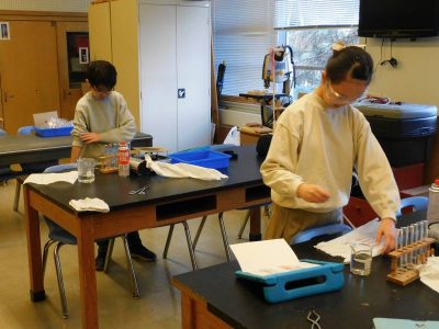 6年生2時間目は、理科です。今日は、6種類の透明な液にどんな物質が溶けているかを当てる実験に取り組んでいました。事前に実験の流れをフローチャートにし、においを嗅いだり、色を見たりなど今まで学習した知識をフルに活用して実験を進めました。実験後、各試験管内に溶けている物質の答え合わせをしました。多くの児童が当てることができ、中には6本とも正解を導き出した児童もいました。