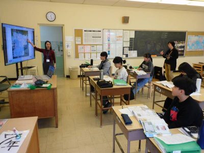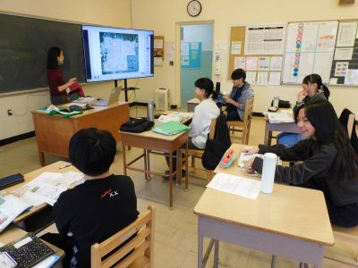 同じ時間7年生は、社会科です。私が教室に入った時は、平城京を示す地図を見てその特徴について意見交換していました。