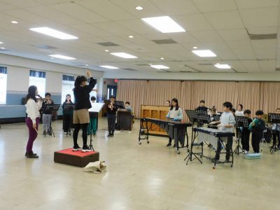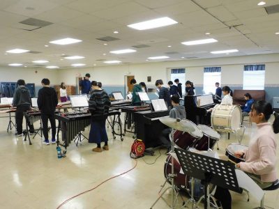 本日5,6時間目、明後日に迫った音楽発表会に向けた各学部の合同練習会が行われました。約2か月間、各自が担当する楽器を練習してきました。明後日は、各学部1曲ずつの演奏となりますが、練習の成果を御覧いただければと思います。(昼休みに音楽室からコナーズホールに楽器を移動しました。)