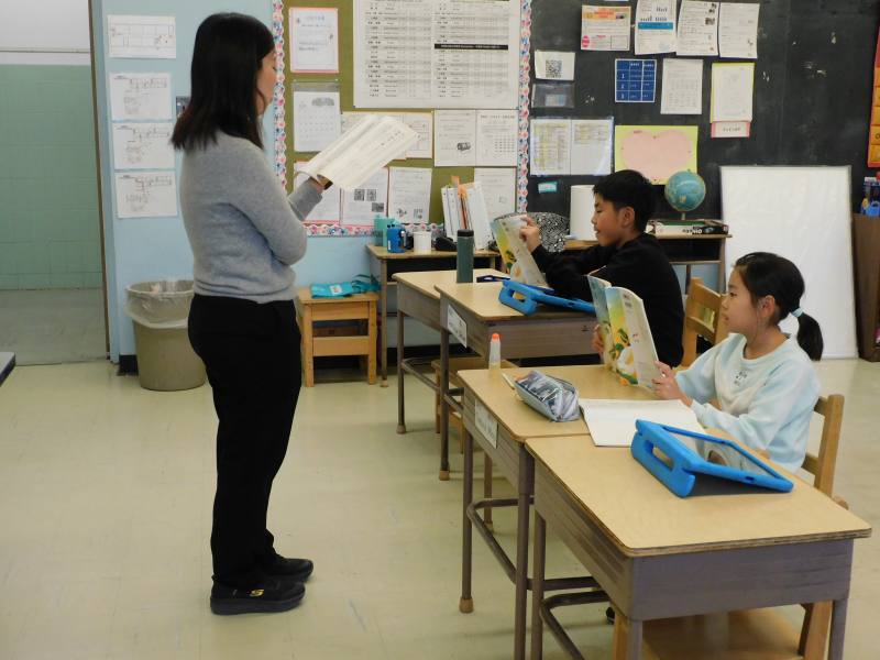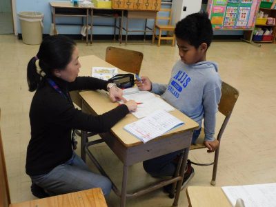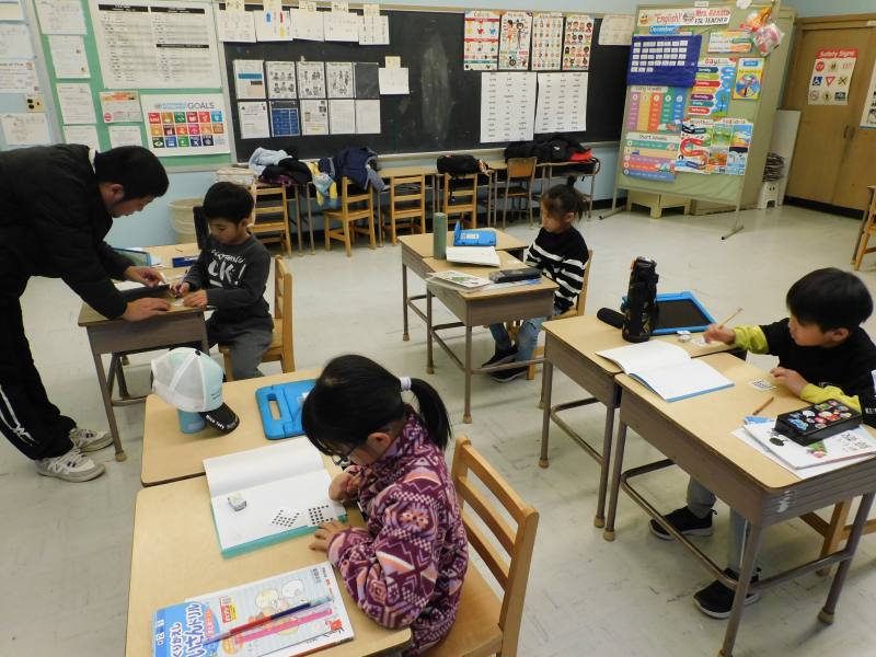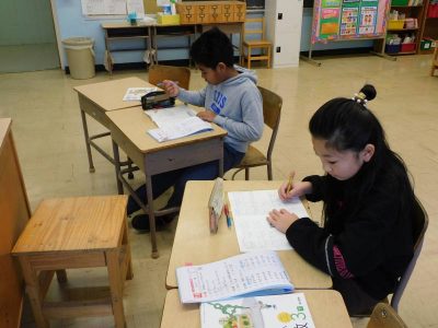 同じ時間3年生も算数です。私が教室に入った時は、小数の問題に挑戦していました。計算間違いをしないよう慎重に答えていました。