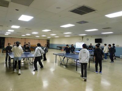 中等部6時間目は、体育です。今日も卓球の練習をしていました。明日の音楽発表会で使用する楽器がホールに置いてあるため、半分のスペースで行いました。ルールに従い、テンポよく対戦相手が代わり、学年を超えて練習していました。