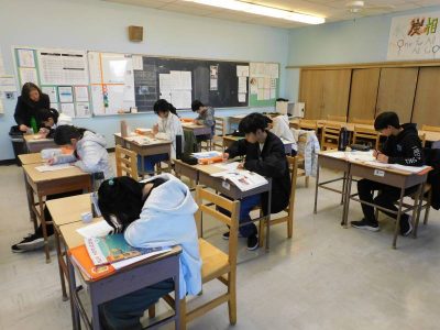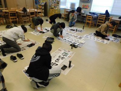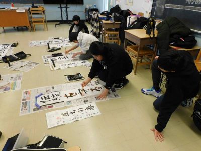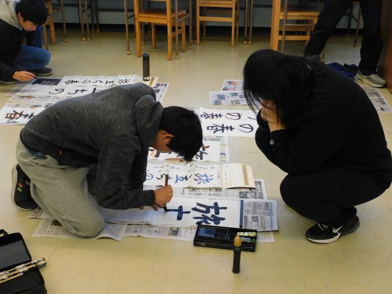 同じ時間9年生は、書写です。見本を参考に、漢字と平仮名のバランスにも注意しながら書いていました。